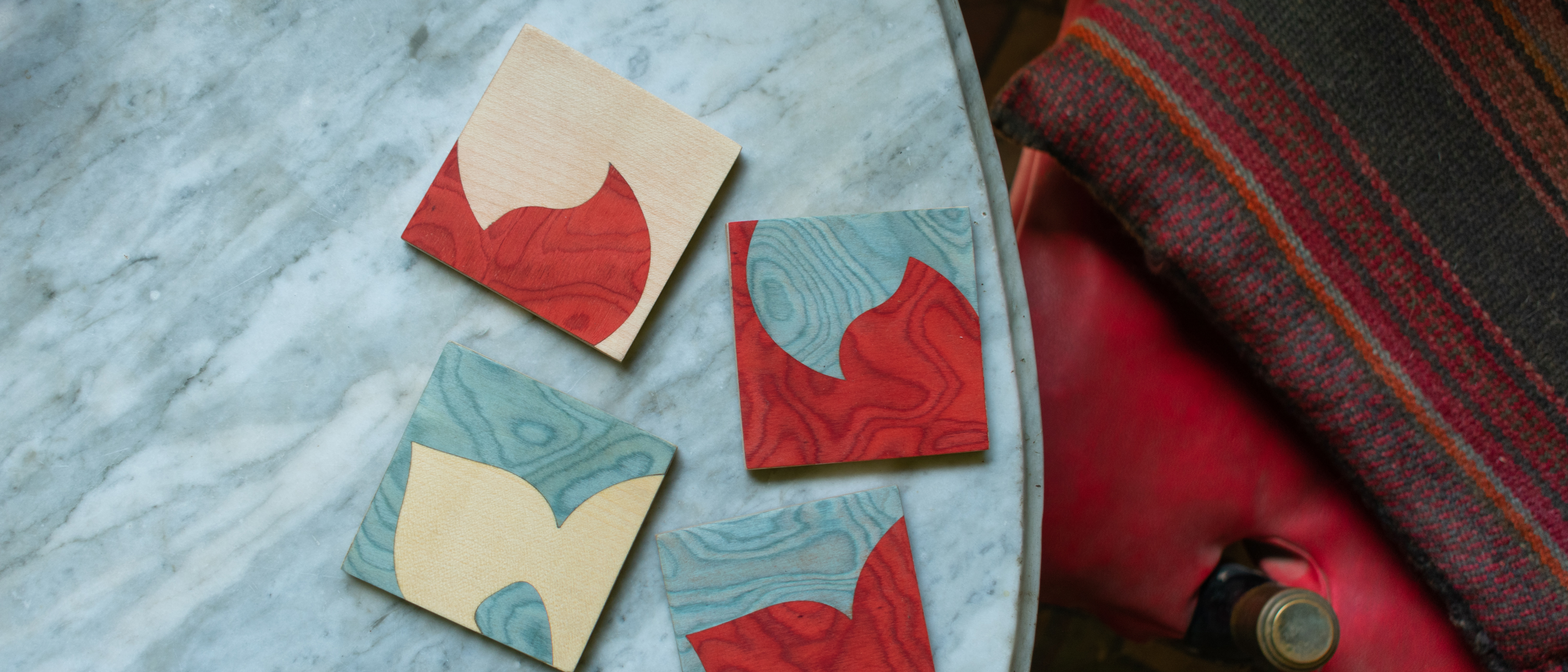 red x light blue (2 coasters)